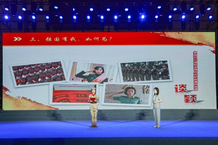 情景剧中,演员们以细腻的表演,生动还原了董必武在大别山播撒革命火种的历程。歌舞《八月桂花遍地开》一登上舞台,便瞬间点燃全场气氛,让现场师生在欢快的旋律中感受红色文化的魅力。特别嘉宾谈颖的登场,更是让现场气氛沸腾。这位95后的黄冈姑娘,曾在九三阅兵女民兵方队接受全国人民的检阅。“我以青春的名义宣誓:赓续大别山红色血脉,传承黄师百廿年荣光;以忠诚铸魂,紧跟党走不动摇……”活动在全场学子的齐声宣誓中落下帷幕。